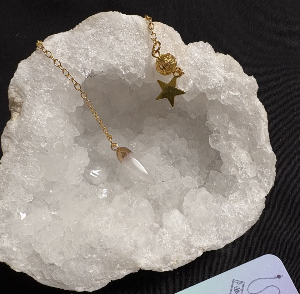 Pendule fait main par mes soins et avec amour, ce pendule léger est parfait pour débuter des travaux en radiesthésie.